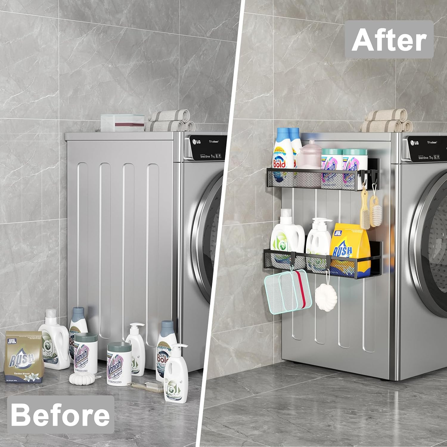 Multi-Use Magnetic Refrigerator Organizer: Can be used on all magnetic surfaces of your home, kitchen or laundry room, such as the side wall of your refrigerator to hold spices, oils, utensils, towels or other essentials. Our moveable refrigerator shelf can also be used on the side of an oven, microwave, coffee machine, washing machine, classroom, whiteboard or tools wall for storage.
